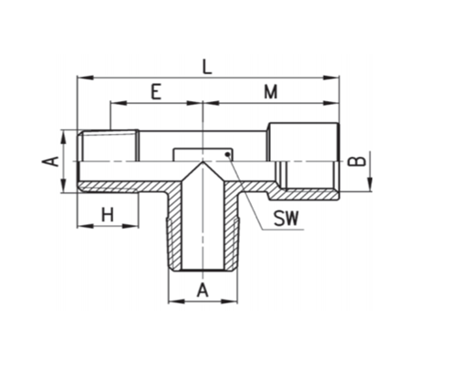 BSPP-adapteri urospuolinen naaras Tee-1/4-lanka