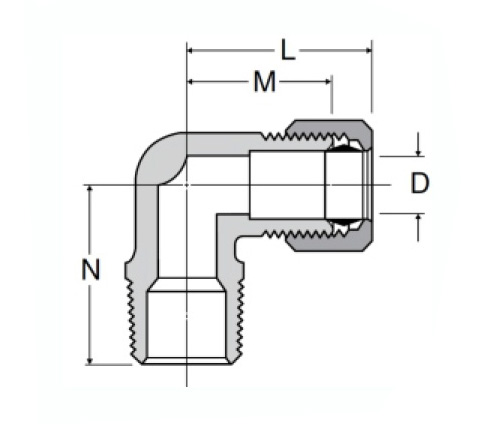Messinki ja asetaali 90 ° uros kyynärpää on suunniteltu SAE J-512: n mukaisesti. Se täyttää kyseisen määritelmän toiminnalliset vaatimukset puristusvelillä ja muodostetulla päässä. Messinki tai asetaaliholkki on upotettu koneistettuun laippaan, joka tarjoaa jäykkyyttä, mutta mahdollistaa putken / putkien asettamisen ilman valmistetta.